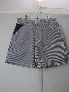 綿100%のヒッコリーデニム素材のショートパンツになります。ポケットにはワンポイントとしてインディコデニムを使用。ハンマーループなど、これぞペインターパンツといったディテールが見られるパンツです。