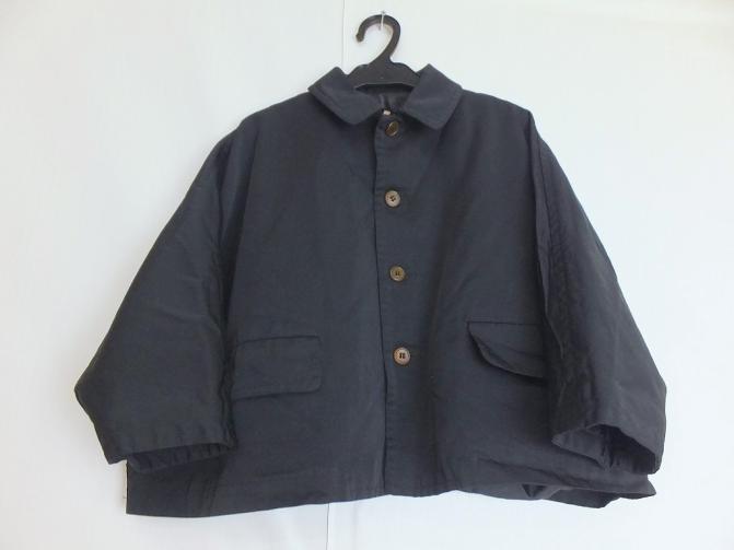 ドルマンスリーブとは、袖ぐりが深く、袖口に向かって細くなっている袖のことをいいます。身頃から裁ち出して作られるのが一般的で、ゆったりとしたルーズなシルエットが特徴です。ショート丈ですので、重くなりすぎずラフに着こなしが出来るジャケットです。