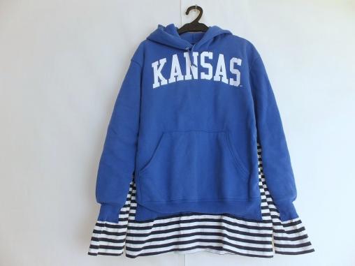 2枚重ね着のような、ベーシックパーカーに人気のボーダー柄が切り替えられたパーカーになります。