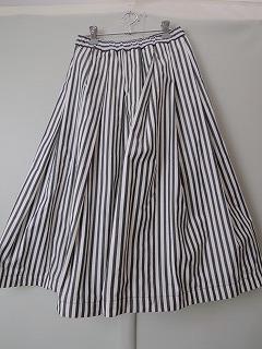 綿100%のストライプ柄 タックが入ったボリュームあるフレアースカートです。