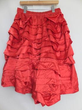 サテン地の段々にフリルデザインのキュロットになります。カラフルな色合いで遊びごころのある個性的なコーディネートも素敵ですね。