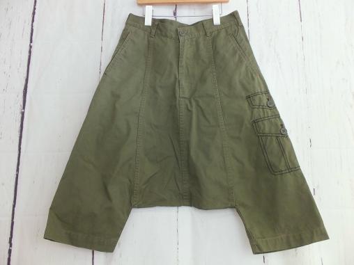 サイドと後ろにポケットステッチがきいたハーフ丈コットン素材のサルエルパンツ。