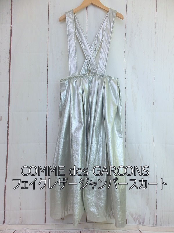COMME des GARCONS コムデギャルソン フェイクレザージャンパースカート シルバー 合成皮革 XS GT-A007 AD2017