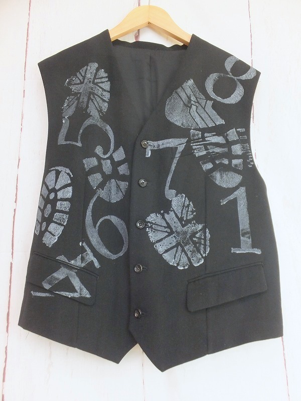 COMME des GARCONS HOMME PLUS コムデギャルソン オム プリュス プリントベスト ブラック 毛100% キュプラ100% PV-040050 AD1995