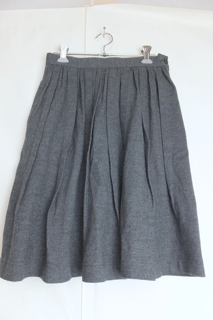ウール100%でウエストあたりにはランダムにプリーツが施しており裾はフレアーになっています。