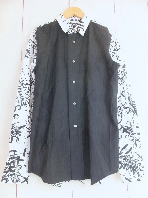 BLACK COMME des GARCONS ブラック コムデギャルソン デザイン切り替え長袖シャツ ブラック、ホワイト L 1H-B004 AD2021
