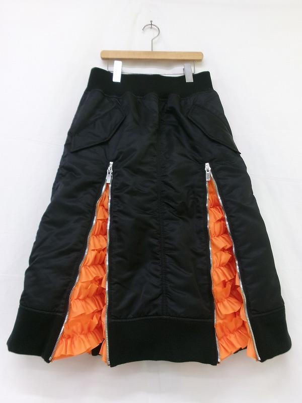 切替部分にファスナー開きになっており中からオレンジのフリルが覗いております。フリルが映えるスカートです。