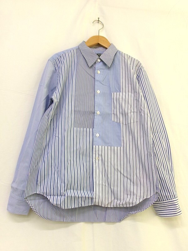 COMME des GARCONS HOMME DEUX コムデギャルソン オム ドゥ ストライプパッチワークシャツ XS DF-B044 AD2020 サックス