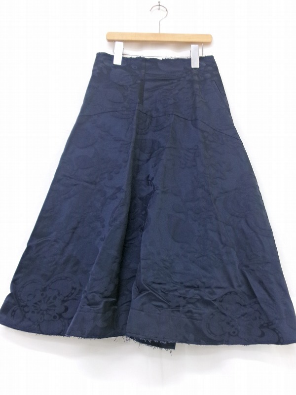 COMME des GARCONS コムデギャルソン フローラルジャガードスカート S GQ-S026 AD2015 ネイビー綿63% レーヨン37%