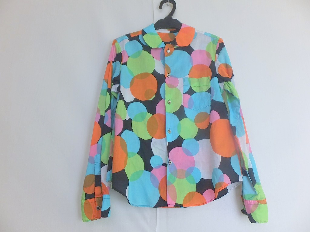 綿100%のさらっとした肌触りの長袖ブラウスになります。ドット柄のカラフルな色合いで華やかです。