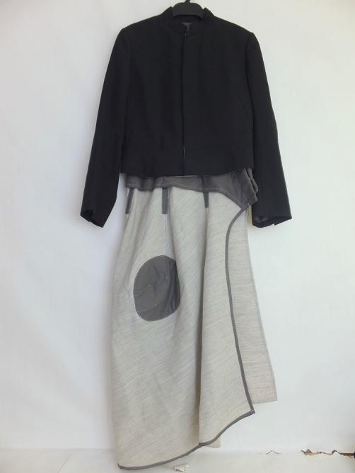 上着のジャケットはウール100%、インナーは綿100%の裾アシンメトリーデザインです。